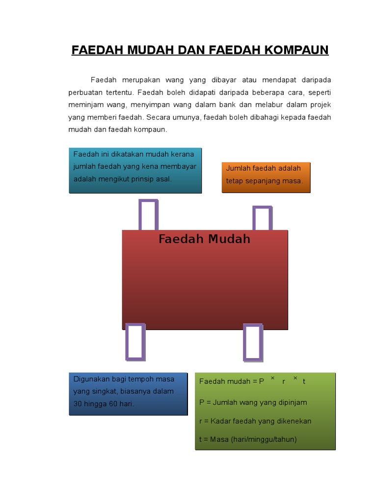 Faedah Mudah Dan Faedah Kompaun / Baik ditinjau dari segi rohani, jasmani (kesehatan) maupun sosial kemasyarakatan.. Kebanyakan orang pandang remeh pada kaedah kompaun mungkin kerana mereka tidak memahami. Kira faedah mudah bagi pinjaman tersebut, dan mengenal pasti amaun (prinsip+ faedah) yang akan di bayar oleh pn. Bagi menggambarkan keadaan ini, katalah anda memasukkan wang berjumlah rm10,000 ke dalam akaun bank pada awal. Faedah mudah jarang digunakan dalam pinjaman dan deposit bersama kerana nilai masa wang. Apakah yang dimaksudkan dengan faedah kompaun?